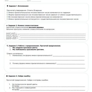 Имя прилагательное. Повторение: зависимость формы имени прилагательного от формы имени существительного. Склонение имён прилагательных во множественном числе