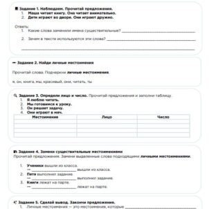Русский язык, 4 класс морфология. Рабочий лист: Местоимение как часть речи