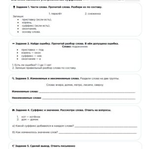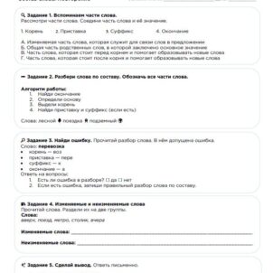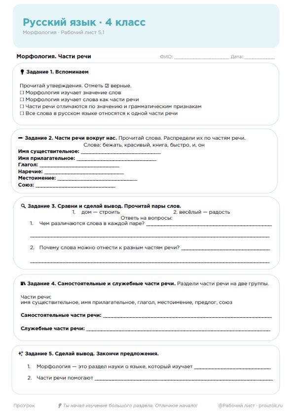 Русский язык, 4 класс морфология. Рабочий лист: Морфология. Части речи