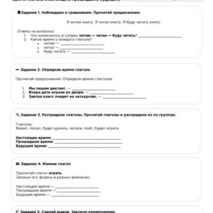 Работа в группах: объединение глаголов в группы по определённому признаку (например, время, спряжение).