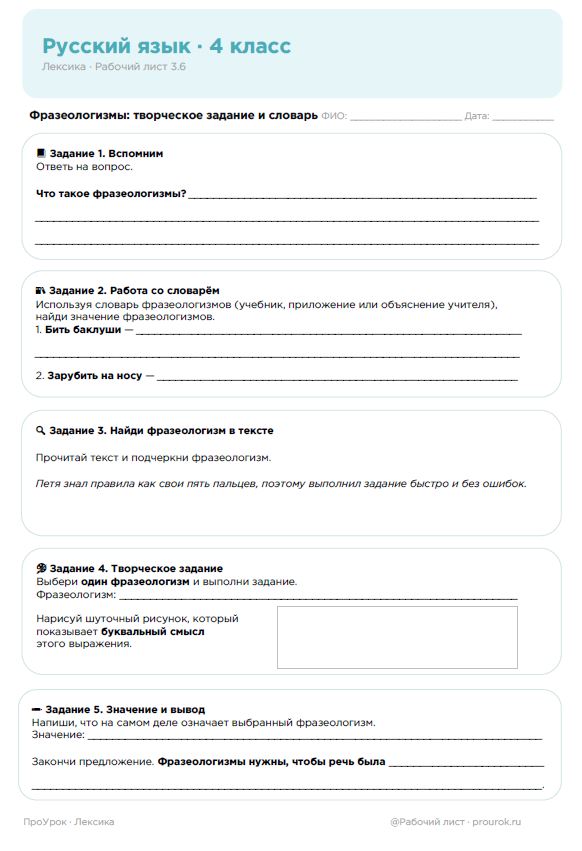 Дифференцированное задание: работа со словарём фразеологизмов, выписывание значений 2–3 фразеологизмов.