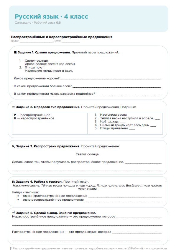 Рабочий лист. Наименование разделов и тем учебного предмета: Синтаксис
